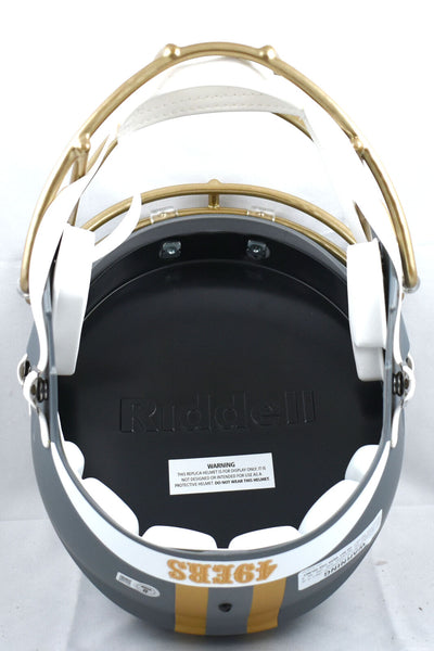 This is a Vernon Davis of the San Francisco 49ers hand autographed Riddell football full size Slate Speed Replica helmet. This item has a Beckett Witnessed Authentication, which comes with a numbered hologram and a QR code for verification. You can view this item on the Beckett Authentication website and it shows when and where the item was signed. It was signed either at a public autograph appearance or a private signing. This is a stock photo of the item. Although you may not receive this exact item, the item you receive is virtually identical, brand new, and in great shape. This is a Vernon Davis of the San Francisco 49ers hand autographed Riddell football full size Slate Speed Replica helmet. This item has a Beckett Witnessed Authentication, which comes with a numbered hologram and a QR code for verification. You can view this item on the Beckett Authentication website and it shows when and where the item was signed. It was signed either at a public autograph appearance or a private signing. This is a stock photo of the item. Although you may not receive this exact item, the item you receive is virtually identical, brand new, and in great shape.