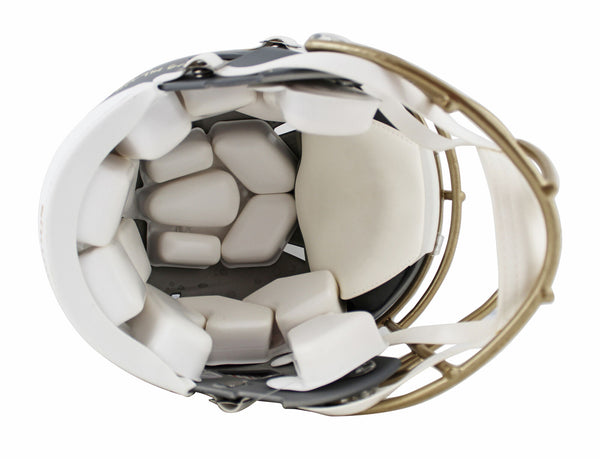 This Autographed Alternate Slate Riddell Authentic Full Size Speed Proline Helmet with the inscription of "Hit The Griddy (Jefferson), Straight Cash Homie (Moss), All I Do Is Catch TDs (Carter)" has been Personally Signed by Justin Jefferson, Randy Moss, & Cris Carter of the Minnesota Vikings. This item is 100% Authentic to include a hologram by Beckett Authentication Services. This item will come with an affixed Beckett Authentication Services (BAS) authentication sticker, which includes a scannable QR code to verify authenticity. Please note that Beckett no longer provides serial-numbered COA cards, and the attached BAS sticker will serve as the complete authentication for this item. This is a BAS Witnessed Protection Program item which means a Beckett Authentication Service representative was present when this item was being signed. We conducted an autograph signing with Justin Jefferson, Randy Moss, & Cris Carter where multiples of the same item were signed. While the photographs are representative of this item, the size, placement and strength of the signature may vary. Each item is hand signed, therefore, each autograph is unique. This item can be verified through BAS Witnessed.
