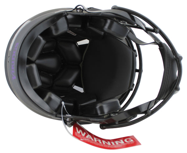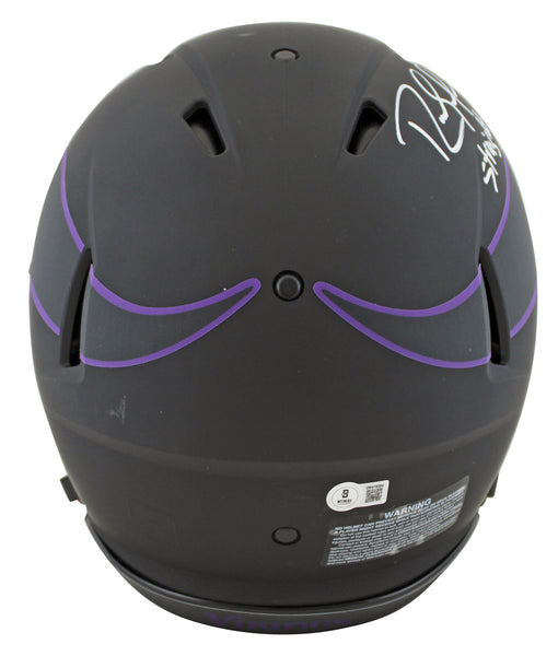 This Autographed w/ White Signature Alternate Eclipse Riddell Authentic Full Size Speed Proline Helmet with the inscription of "Straight Cash Homie" has been Personally Signed by Randy Moss of the Minnesota Vikings. This item is 100% Authentic to include a hologram by Beckett Authentication Services. This item will come with an affixed Beckett Authentication Services (BAS) authentication sticker, which includes a scannable QR code to verify authenticity. Please note that Beckett no longer provides serial-numbered COA cards, and the attached BAS sticker will serve as the complete authentication for this item. This is a BAS Witnessed Protection Program item which means a Beckett Authentication Service representative was present when this item was being signed. We conducted an autograph signing with Randy Moss where multiples of the same item were signed. While the photographs are representative of this item, the size, placement and strength of the signature may vary. Each item is hand signed, therefore, each autograph is unique. This item can be verified through BAS Witnessed.