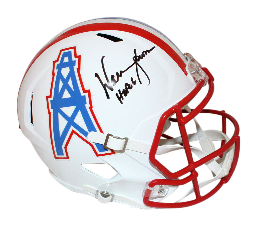 Warren Moon Autographed Houston Oilers F/S '81-'98 speed Helmet BAS 39844 The number in the listing title is just an inventory sku for our records and is not the authentication number. The item pictured is a stock photo unless otherwise noted. This is a Houston Oilers full size speed throwback 1981-1998 replica helmet that was personally autographed by Warren Moon. Includes a certificate of authenticity from Beckett Authentication Services (BAS) and Denver Autographs.