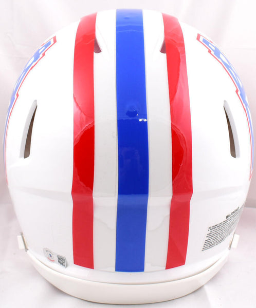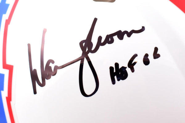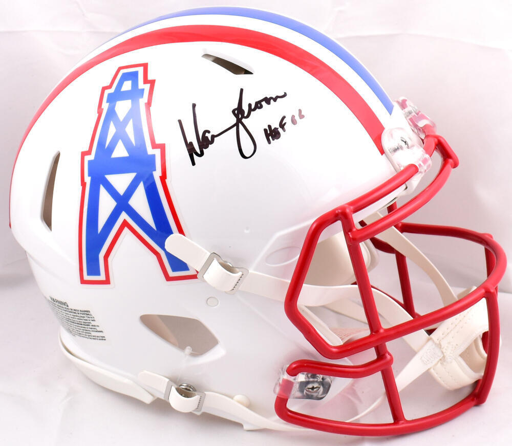 Warren Moon Autographed Houston Oilers F/S Speed Authentic Helmet w/HOF - Beckett W Hologram *Black This is a hand autographed Helmet of Warren Moon of the Houston Oilers. This is a Riddell Football Full Size Speed Authentic Helmet. Inscribed HOF. This item has a Beckett Witnessed Authentication, which comes with a numbered sticker hologram and a QR code for verification. You can view this item on the Beckett Authentication website and it shows when and where the item was signed. It was signed either at a public autograph appearance or a private signing. This is a stock photo of the item. Although you may not receive this exact item, the item you receive is virtually identical and brand new in great shape.