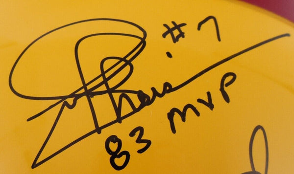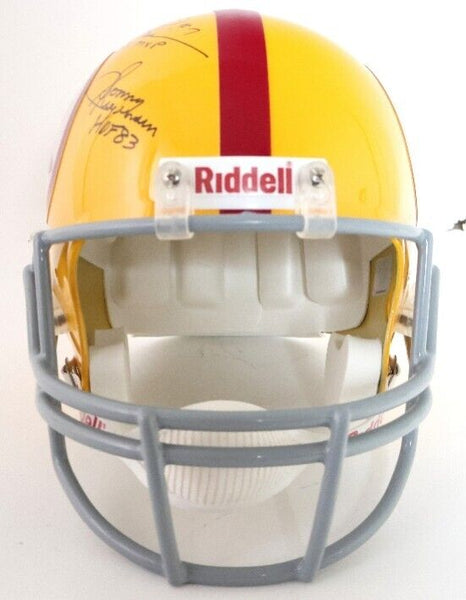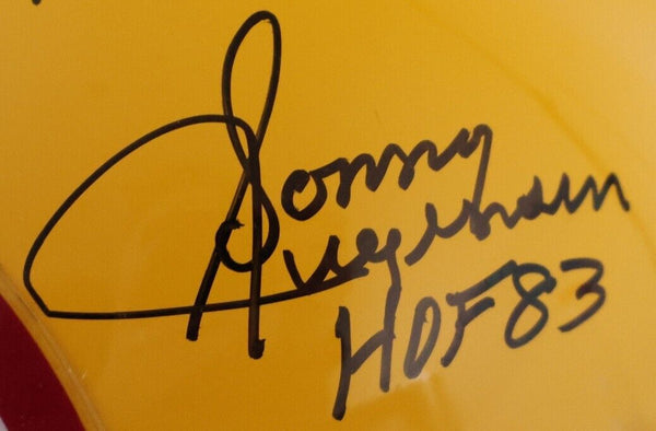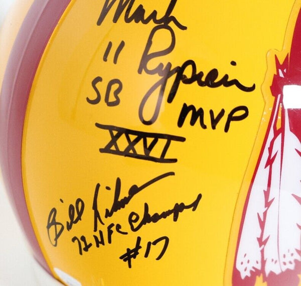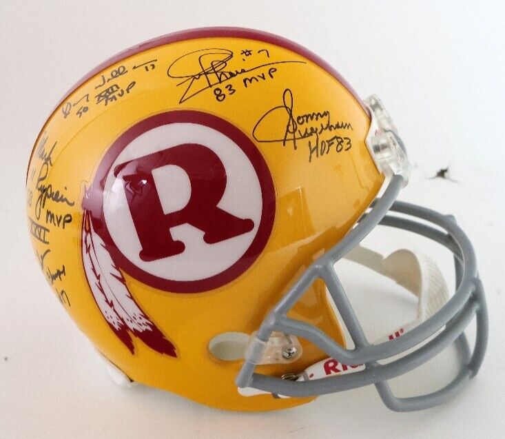 Washington Redskins Quarterback Legends Autographed Helmet - JSA Certified Own a piece of NFL history with this extraordinary collector's helmet featuring the authentic signatures of five legendary Washington Redskins quarterbacks who defined an era of football excellence. Featured Quarterback Legends: Sonny Jurgensen - Hall of Fame quarterback and franchise icon Billy Kilmer - Led the team to Super Bowl VII Joe Theismann - Super Bowl XVII champion and NFL MVP Doug Williams - Super Bowl XXII MVP and championship hero Mark Rypien - Super Bowl XXVI MVP Authentication & Quality: Every signature is verified with a James Spence Authentication (JSA) Letter of Authenticity, ensuring the legitimacy and value of your investment. JSA is recognized as one of the most trusted names in sports memorabilia authentication. Perfect For: Serious NFL collectors and Washington football fans Man cave or office display centerpiece Investment-grade sports memorabilia Unique gift for the ultimate football enthusiast This is more than memorabilia - it's a tangible connection to the golden era of Washington football, featuring quarterbacks who brought championship glory and unforgettable moments to the franchise.