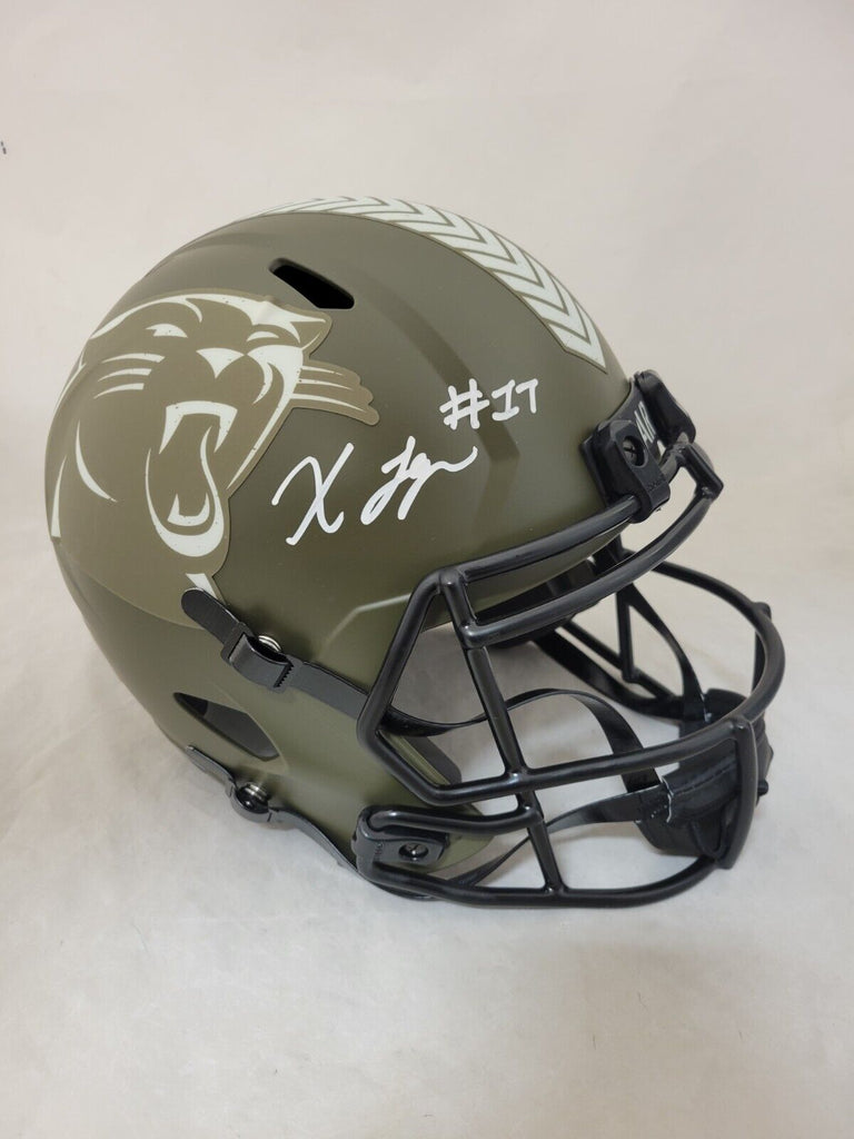 XAVIER LEGETTE SIGNED CAROLINA PANTHERS FULL SIZE SALUTE TO SERVICE (STS) SPEED REPLICA HELMETBECKETT QR HOLOGRAMTHIS MEANS THE HELMET WAS SIGNED WITH A BECKETT REPRESENTATIVE PRESENT SO YOU CAN BE 100% CERTAIN ITS THE REAL THING.