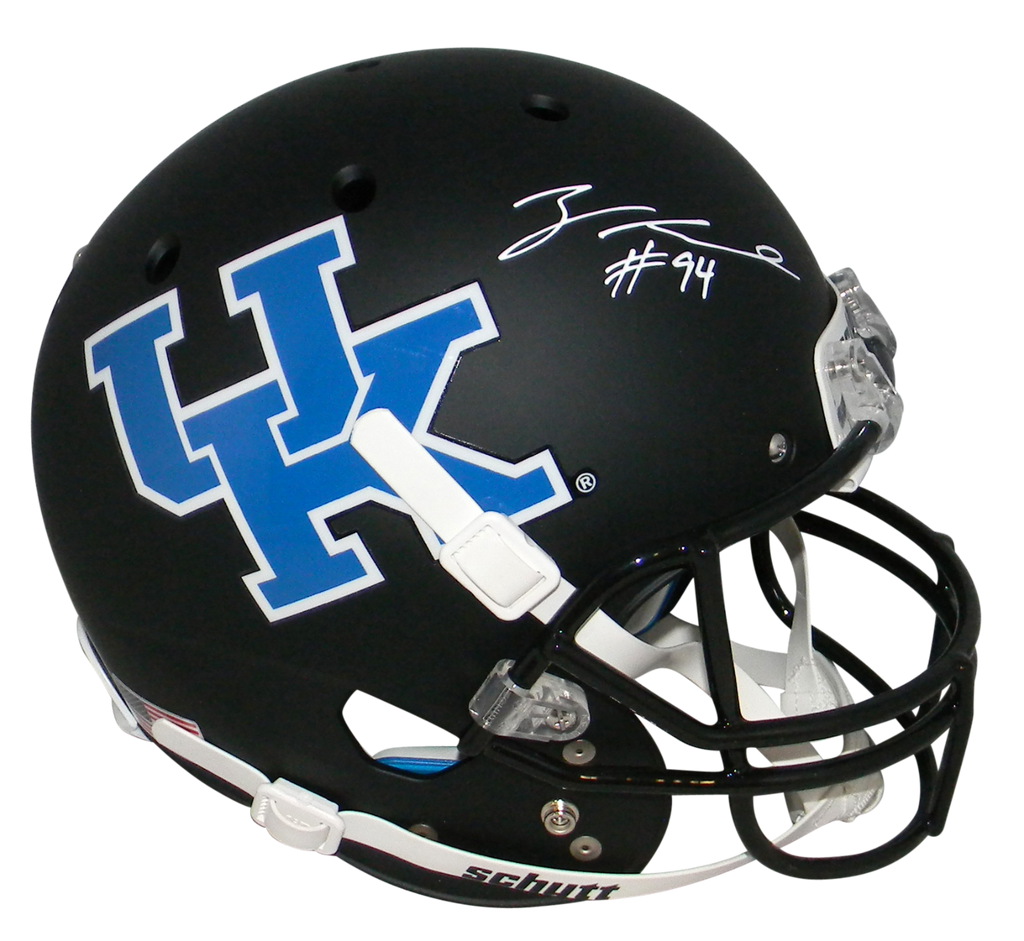 Za'Darius Smith, former star linebacker for the Wildcats, has hand signed this matte black Kentucky Schutt full-size replica helmet at a private signing. This item comes with a certificate of authenticity (COA) from Beckett Authentication Services and was signed in the presence of one of their representatives. You will receive a serial-numbered COA along with a matching serial-numbered sticker on the helmet. The authenticity can be verified online by entering the serial number.Item pictured may not be the exact item you will receive. It will be similar quality, and we guarantee your satisfaction.
