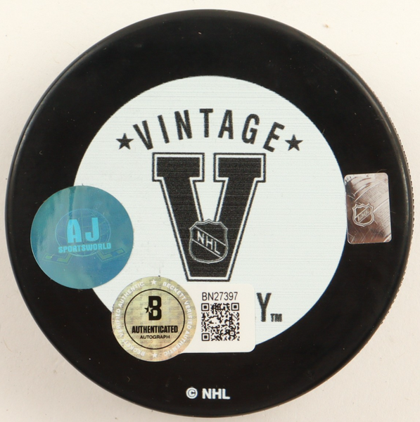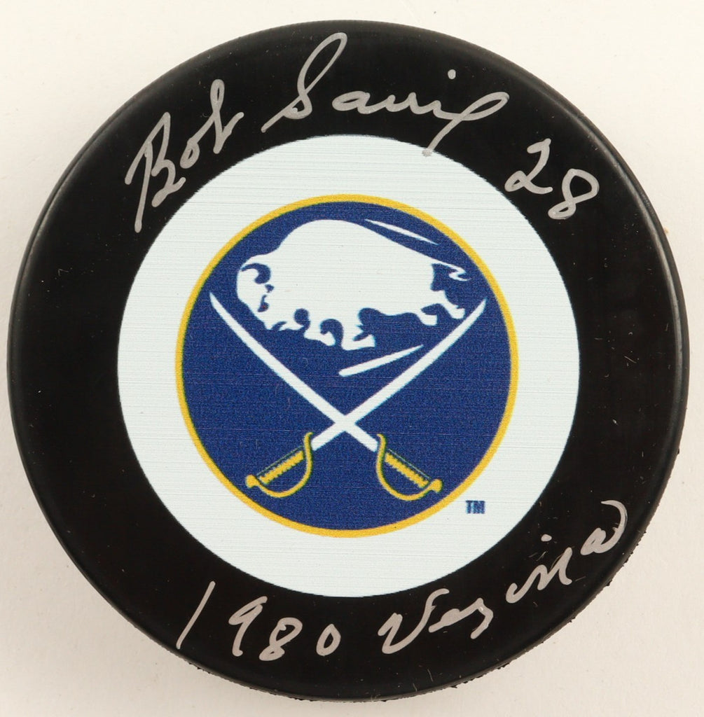 Buffalo Sabres Team Logo hockey puck. Hand-signed by Bob SauveThe autograph includes an official Beckett Authentication Services serially numbered scannable hologram and QR Code card for authenticity purposes. The signing of this item was witnessed by Beckett.Authentication: Beckett Scannable Hologram with QR Code card