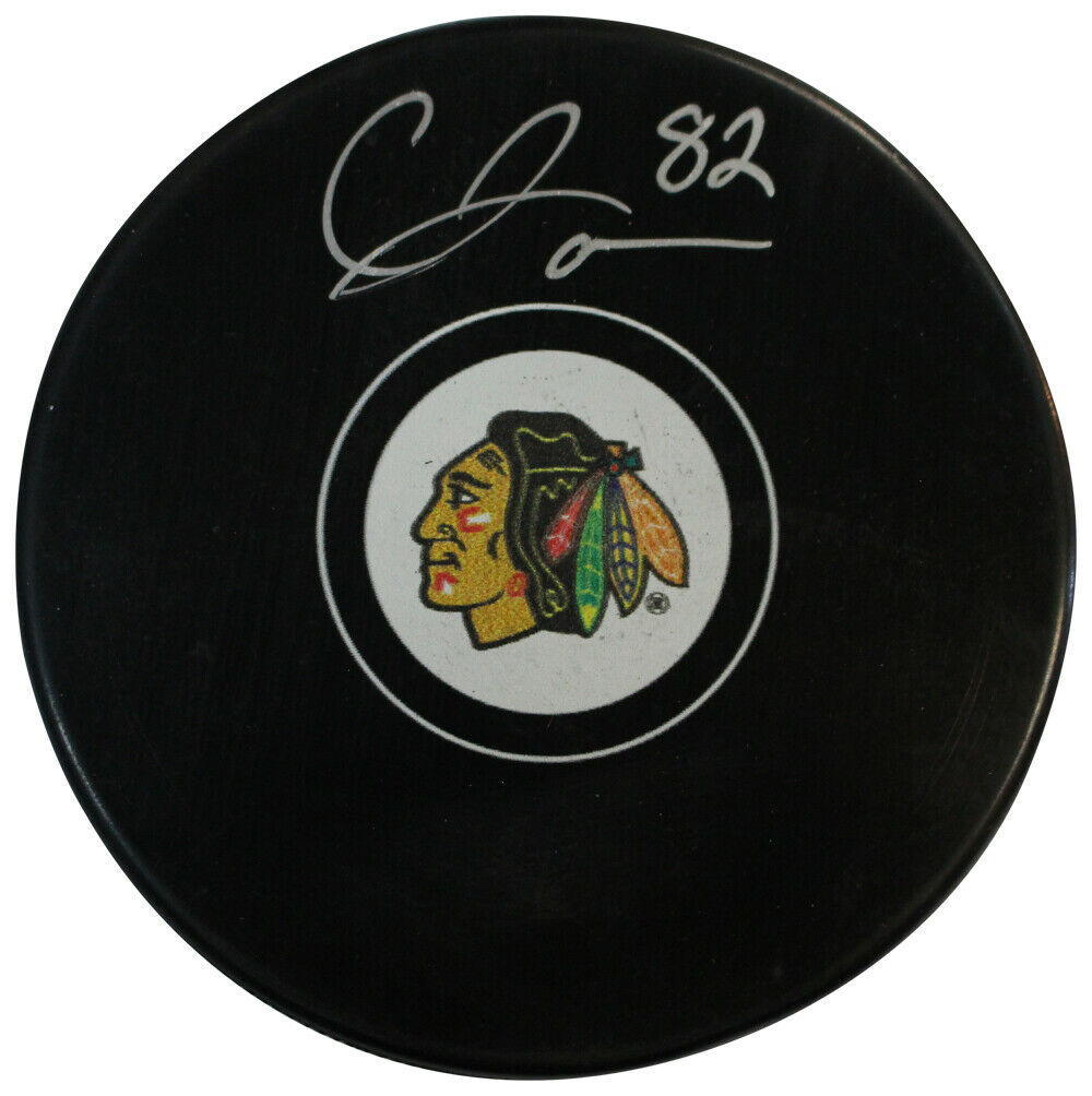Caleb Jones Autographed/Signed Chicago Blackhawks Puck Fanatics 35409 The number in the listing title is just an inventory sku for our records and is not the authentication number. This is the exact item that you will receive so please see pictures for condition. This is a hockey puck that was personally autographed by Caleb Jones. Includes a Fanatics Authentic hologram and a certificate of authenticity from Denver Autographs.