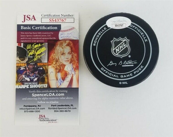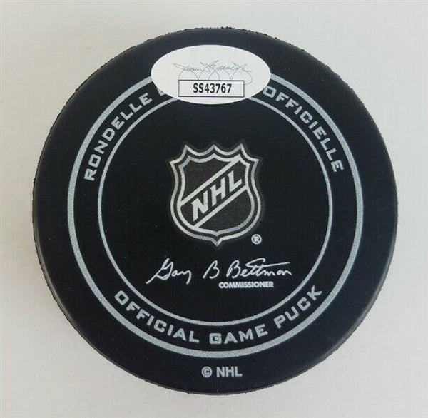 This autographed hockey puck has been personally hand-signed by Pavel Datsyuk of the Detroit Red Wings. This autograph is certified by James Spence Authentication (JSA). It comes with the numbered hologram and matching Certificate of Authenticity.