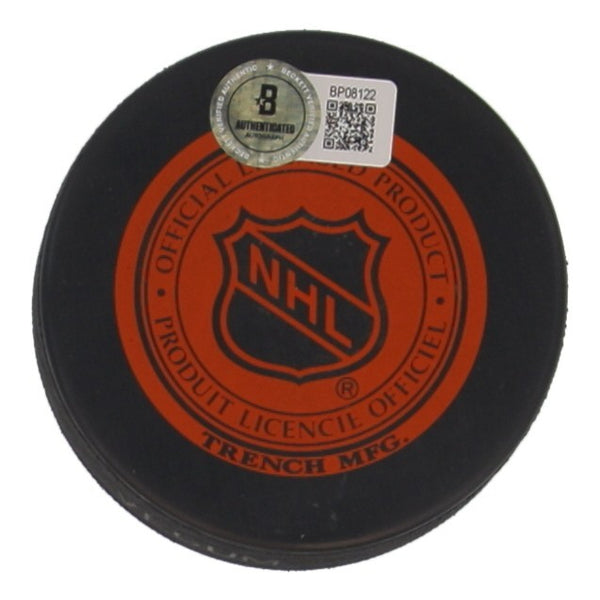 Buffalo Sabres Team Logo hockey puck. Hand-signed and inscribed by Pat LaFontaine (HOF). Pat also played for Team USA during the 1984 Winter Olympics.The autograph includes an official Beckett Authentication Services serially numbered hologram and QR Code card for authenticity purposes. The signing of this item was witnessed by Beckett.Authentication: Beckett Hologram with QR Code card