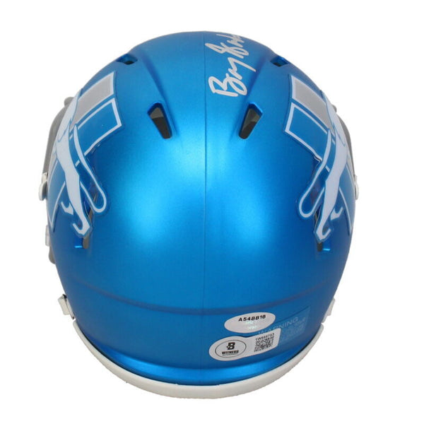This Detroit Lions mini helmet has been personally hand-signed by Barry Sanders. It comes with an individually numbered, tamper-evident hologram from Beckett Authentic. To ensure authenticity, the hologram can be reviewed online. This process helps to ensure that the product purchased is authentic and eliminates any possibility of duplication or fraud.Please note that this helmet comes complete with a custom visor.
