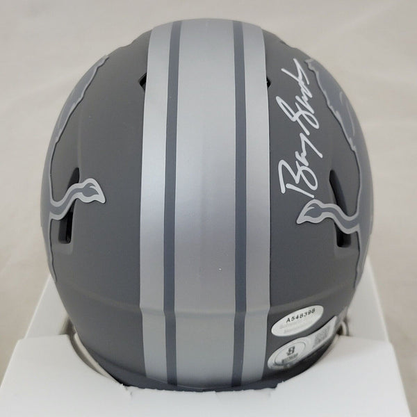 BARRY SANDERS SIGNED DETROIT LIONS SLATE SPEED MINI HELMET BECKETT QR