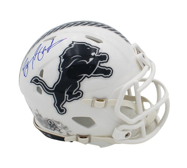 A Detroit Lions Speed Salute to Service 3 NFL Mini Helmet hand signed by Barry Sanders. The item and signature are in excellent condition. Barry is a 10x Pro Bowler, 10x All-Pro, 4x Rushing Champion, and NFL MVP. AUTHENTICATION: The item is accompanied by a Schwartz Sports Certificate of Authenticity - Schwartz Sports Serial Numbered & Databased Hologram.