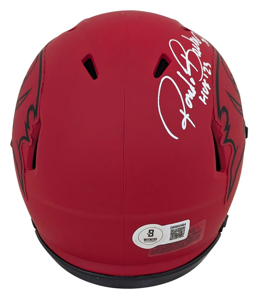 This Autographed Alternate Rave Speed Mini Helmet W/ Uv Mirrored Back Acrylic Display Case with the inscription of "HOF 23" has been Personally Signed by Ronde Barber of the Tampa Bay Buccaneers. This item is 100% Authentic to include a hologram by Beckett Authentication Services. This item will come with an affixed Beckett Authentication Services (BAS) authentication sticker, which includes a scannable QR code to verify authenticity. Please note that Beckett no longer provides serial-numbered COA cards, and the attached BAS sticker will serve as the complete authentication for this item. This is a BAS Witnessed Protection Program item which means a Beckett Authentication Service representative was present when this item was being signed. We conducted an autograph signing with Ronde Barber where multiples of the same item were signed. While the photographs are representative of this item, the size, placement and strength of the signature may vary. Each item is hand signed, therefore, each autograph is unique. This item can be verified through BAS Witnessed.
