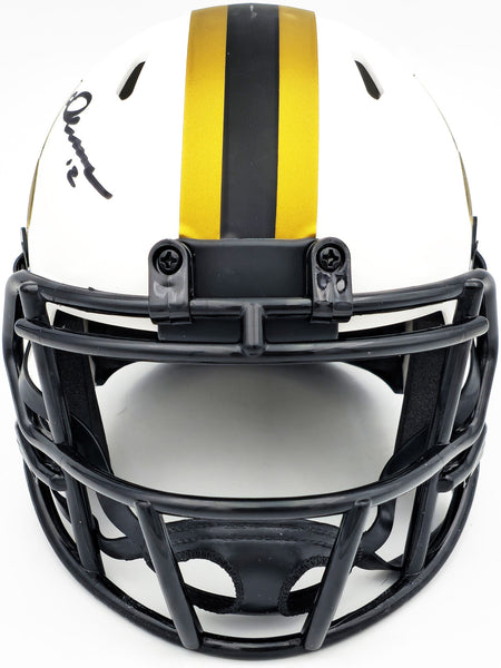 This is a New Orleans Saints Lunar Eclipse White Speed Mini Helmet that has been hand signed by Chris Olave. The Eclipse helmets are delicate and may have some marks or scratches on them. This item has been witnessed and certified authentic by Beckett Authentication (BAS) and comes with their tamper-proof witness sticker.