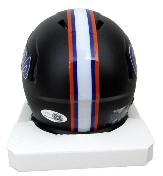 D. J. Lagway Signed/Auto Black Matte Mini Football Helmet Florida Gators. This helmet is authenticated by JSA and includes their tamper-proof hologram sticker with QR Code.