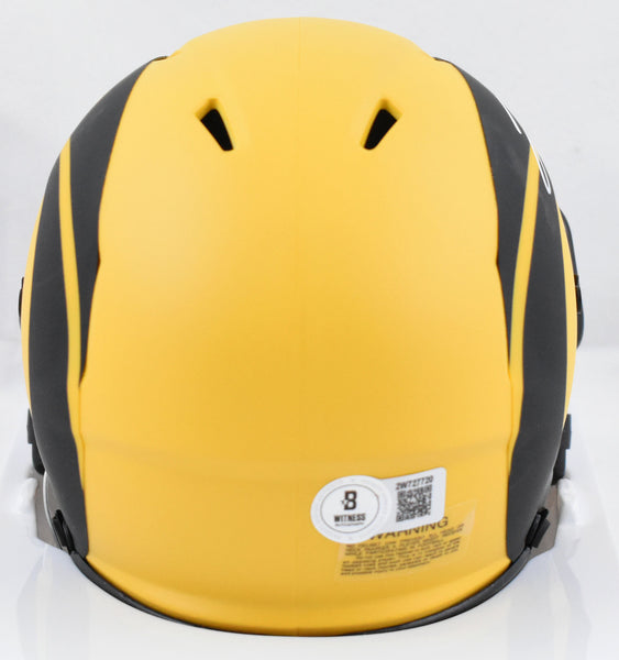 This is a hand autograph of Jared Verse of the Los Angeles Rams on a Riddell Football Rave Speed Mini Helmet. This item has a Beckett Witnessed Authentication, which comes with a numbered hologram and a QR code for verification. You can view this item on the Beckett Authentication website and it shows when and where the item was signed. It was signed either at a public autograph appearance or a private signing. This is a stock photo of the item. Although you may not receive this exact item, the item you receive is virtually identical and brand new in great shape. This is a hand autograph of Jared Verse of the Los Angeles Rams on a Riddell Football Rave Speed Mini Helmet. This item has a Beckett Witnessed Authentication, which comes with a numbered hologram and a QR code for verification. You can view this item on the Beckett Authentication website and it shows when and where the item was signed. It was signed either at a public autograph appearance or a private signing. This is a stock photo of the item. Although you may not receive this exact item, the item you receive is virtually identical and brand new in great shape.