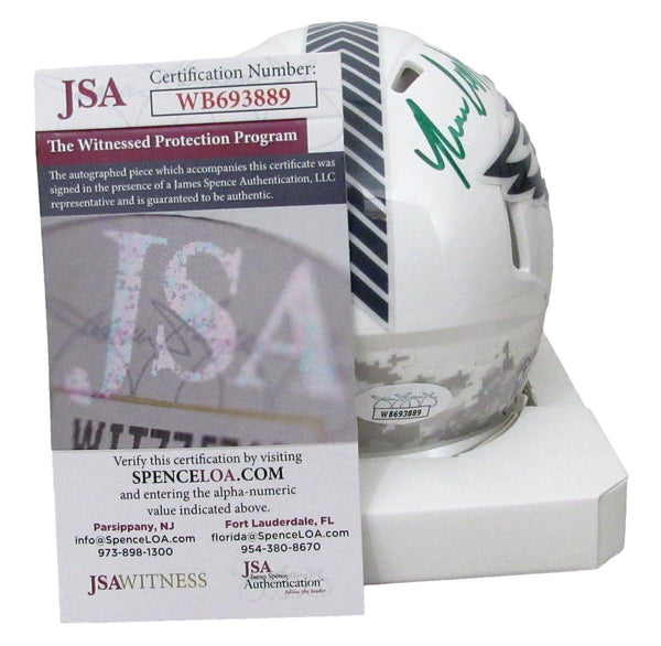 Nolan Smith Signed/Autographed Salute To Service Mini Football Helmet Philadelphia Eagles. This helmet is authenticated by JSA and includes their Tamper-proof Hologram Sticker and Certificate of Authenticity
