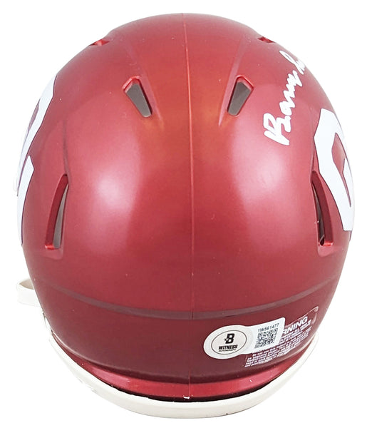 This Autographed Speed Mini Helmet W/ Uv Mirrored Back Acrylic Display Case has been Personally Signed by Barry Switzer of the Oklahoma Sooners. This item is 100% Authentic to include a hologram by Beckett Authentication Services. This item will come with the new Beckett Authentication hologram that has a scannable QR code rather than the traditional COA. If you would like to have a COA, you are welcome to reach out to Beckett for a printed certification once you receive your item. This is a BAS Witnessed Protection Program item which means a Beckett Authentication Service representative was present when this item was being signed. We conducted an autograph signing with Barry Switzer where multiples of the same item were signed. While the photographs are representative of this item, the size, placement and strength of the signature may vary. Each item is hand signed, therefore, each autograph is unique. This item can be verified through BAS Witnessed.