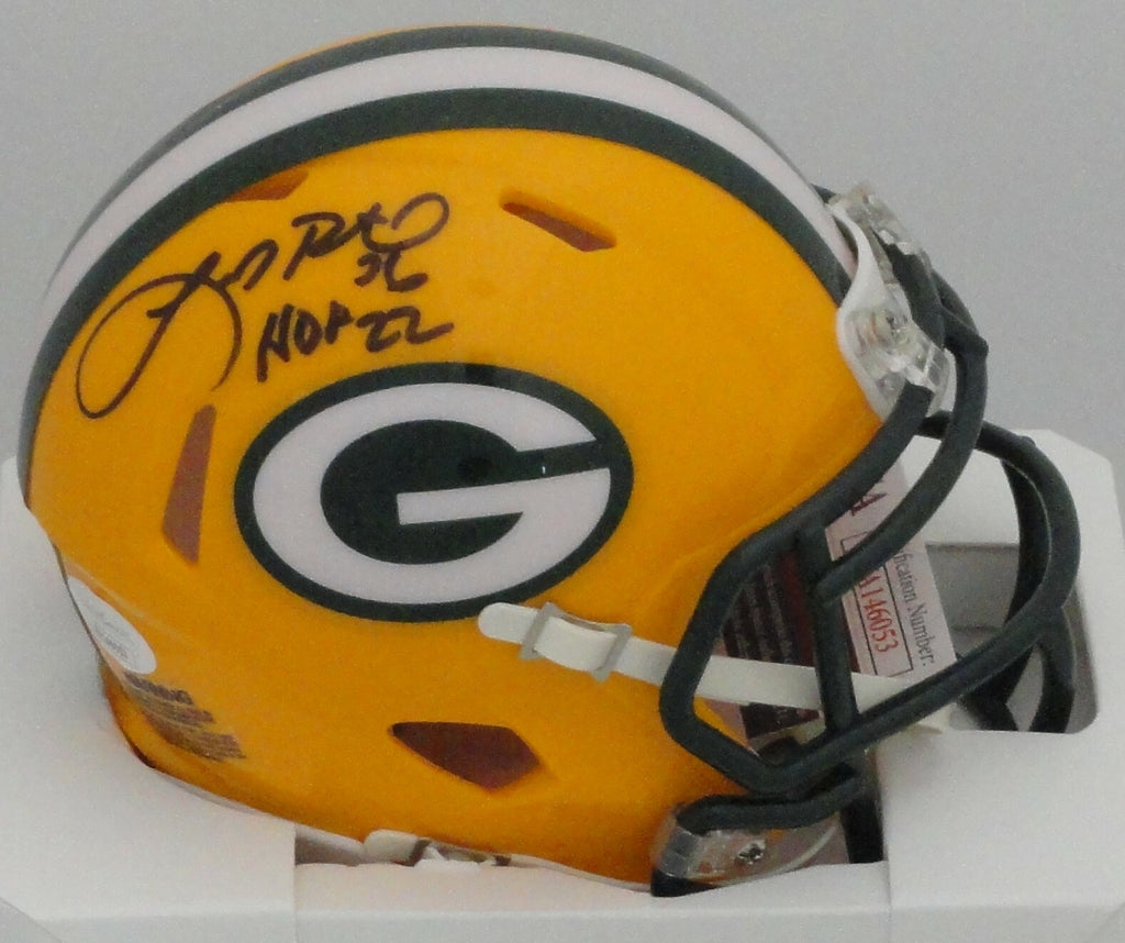 Riddell Speed Mini Helmet hand signed by former Green Bay Packer NFL Hall of Famer LEROY BUTLER. The signature is in Black sharpie with the inscription "HOF 2022". Butler was a member of the PACKERS SUPER BOWL XXXI Championship Team and became a member of the NFL Hall of Fame class of 2022!. This item was signed at a private signing with us and would make a great addition to any PACKERS collection! This item is guaranteed to be 100% authentic and will include a Certificate of Authenticity from JSA authentication .
