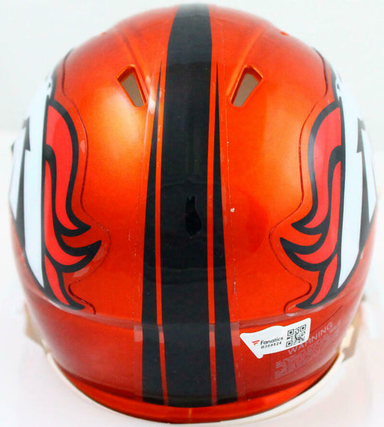 Peyton Manning Autographed Denver Broncos Flash Speed Mini Helmet-Fanatics Auth *White This is a hand autograph of Peyton Manning of the Denver Broncos on a Riddell Football Flash Speed Mini Helmet. This item has a Fanatics Authentication, which comes with a numbered sticker hologram and a matching Fanatics Certificate of Authenticity. You can view this item on the Fanatics Authentication website and it shows when and where the item was signed. It was signed either at a public autograph appearance or a private signing. This is a stock photo of the item. Although you may not receive this exact item, the item you receive is virtually identical and brand new in great shape.