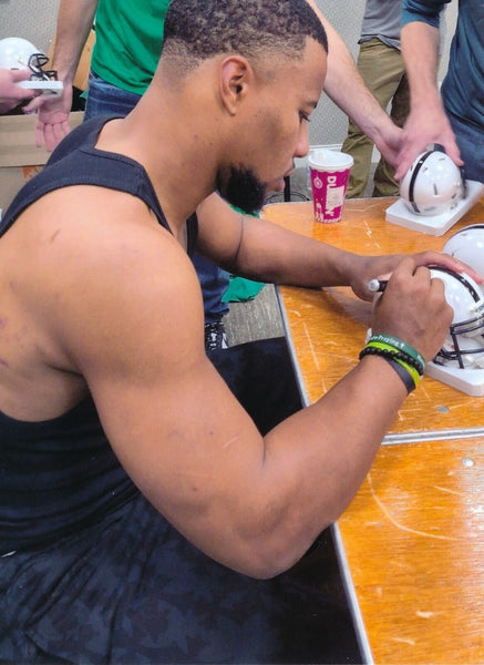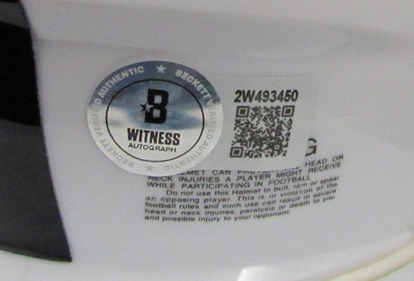Saquon Barkley Signed/Autographed White Penn State Mini Helmet. This helmet is authenticated by BAS/Beckett Witness and includes their Tamper-proof Hologram Sticker.