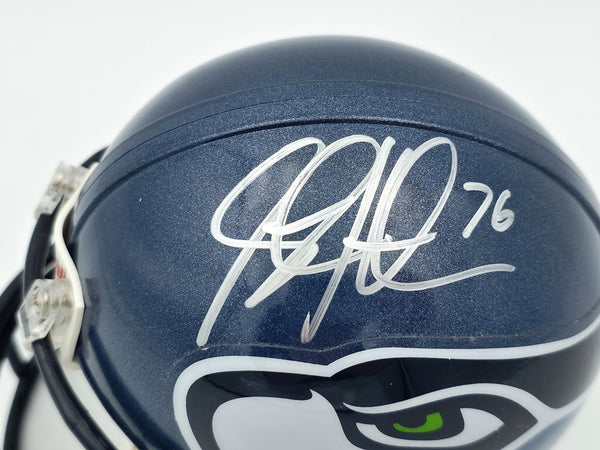 Steve Hutchinson Autographed Seahawks Blue Mini Helmet Beckett QR #BS30343