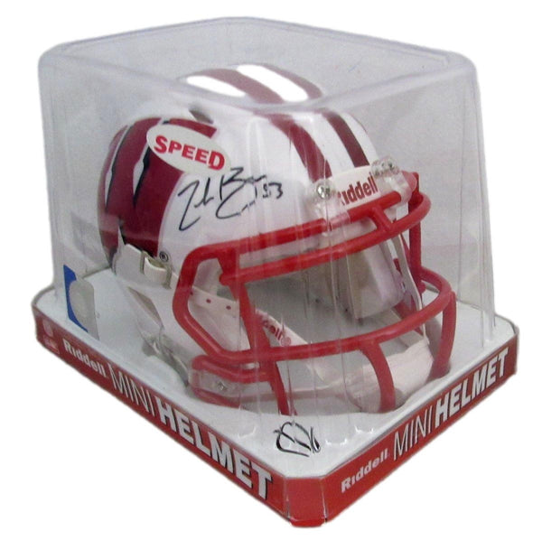 Zack Baun Signed/Autographed White Mini Football Helmet University of Wisconsin. This helmet is authenticated by BAS/Beckett Witness and includes their Tamper-proof Hologram Sticker.