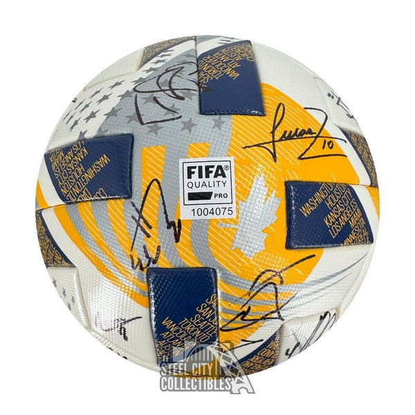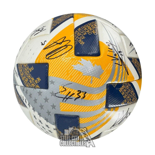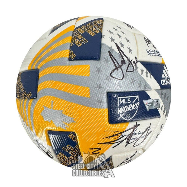 This 2021 Columbus Crew team signed and matched used soccer ball comes authenticated by Beckett and Fanatics. Autographs include. G. Zardes, M. Berry, P. Kitchen, S.Abdul-Salaam, D. Etienne, L. Zelarrayan, E. Hurtado, J. Mensah, Artur, J. Williams, E. Bush, P. Santos, E. Room, A. Morris, M. Valenzuela, D. Nagbe, G. Lillard, E. Dick, S. Moreira, V. Wormgoor, L. Fraser, A. Matan.