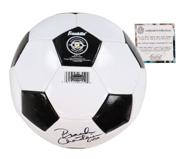 Franklin size 5 soccer ball has been hand-signed and inscribed by Brandi Chastain (Team USA, HOF).The autograph(s) includes an official Schwartz Sports Hologram and matching COA for authenticity purposes.Authentication: Schwartz Sports COA