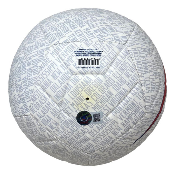 Featured is a Mia Hamm signed USA Nike soccer ball. This ball has been hand signed by Hamm and comes with the Beckett witnessed hologram and certificate of authenticity. This ball would make a great addition to any sports memorabilia collection. SPECIFICATIONS Autographed By: Mia Hamm Team: USA Sport: Soccer Authentication: Beckett Grading Services