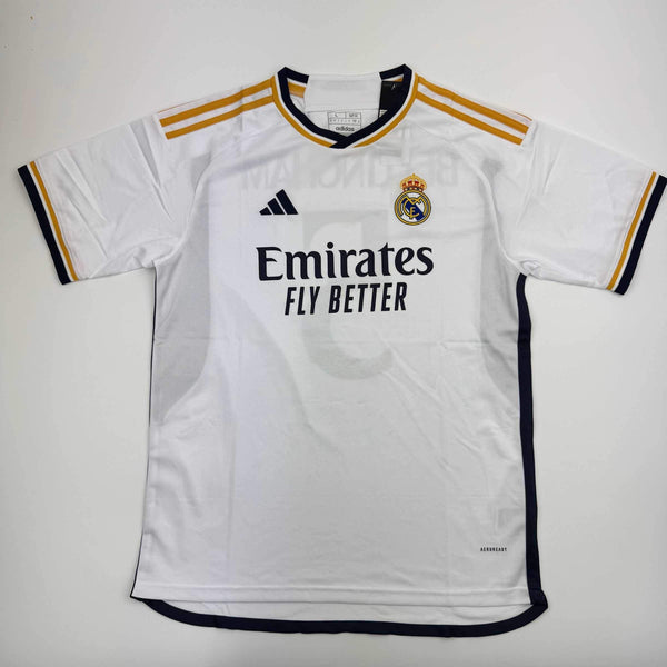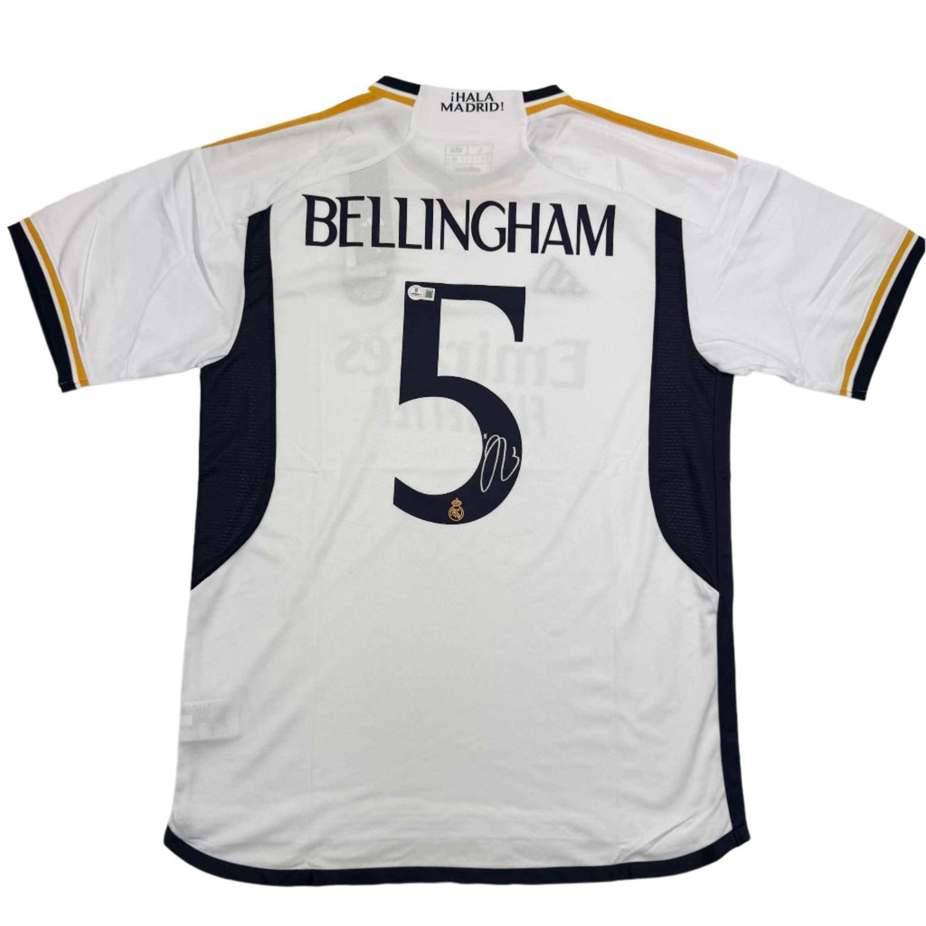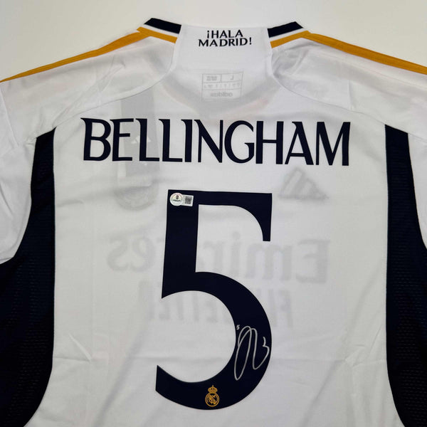 Autographed/Signed Jude Bellingham Real Madrid White Soccer Jersey Beckett COA Jersey has no brand names or logos. This is a custom jersey and was not manufactured by or in any manner associated with any professional sports league or manufacturer. This custom jersey carries no professional sports league designation. The item is intended to be an autographed collectible. The custom jersey displays the name and number of the player. This item in no way is affiliated with or connected to any professional sports organization. Size is XL.