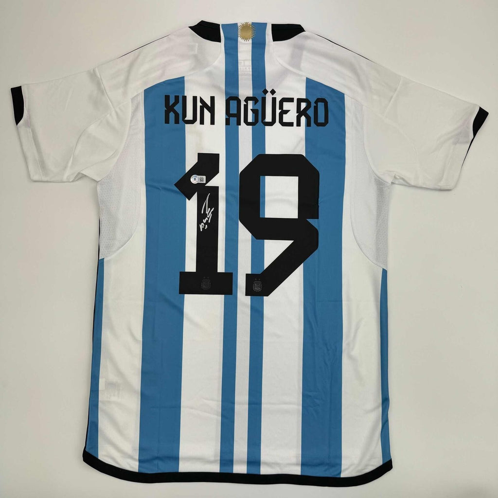 Autographed/Signed Sergio Kun Aguero Argentina Blue Soccer Futbol Jersey BAS COA Authentic and comes with third party authentication.