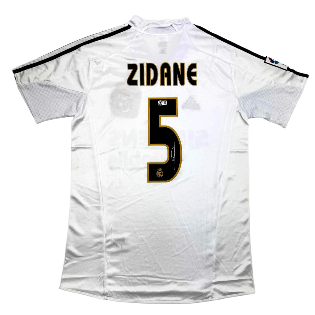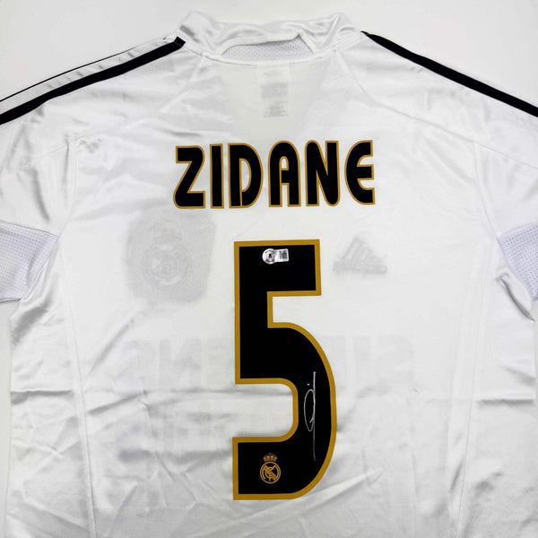 Autographed/Signed Zinedine Zidane Real Madrid White Soccer Jersey Beckett COA Jersey has no brand names or logos. This is a custom jersey and was not manufactured by or in any manner associated with any professional sports league or manufacturer. This custom jersey carries no professional sports league designation. The item is intended to be an autographed collectible. The custom jersey displays the name and number of the player. This item in no way is affiliated with or connected to any professional sports organization. Size is XL.