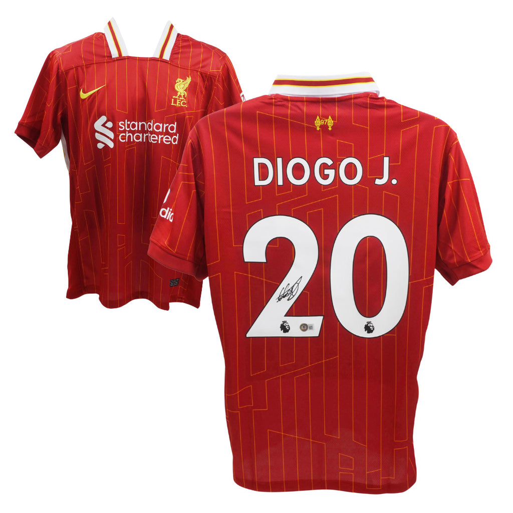 This is a Diogo Jota Signed Liverpool FC Home Soccer Jersey #20 with Beckett COA. THE ITEM IN THE PICTURE IS A STOCK IMAGE. YOU WILL RECEIVE AN IDENTICAL ITEM OF EQUAL QUALITY. ALL JERSEYS ARE SIZE LARGE. Every item of signed memorabilia we sell is official and of the highest quality. We pride ourselves on providing sports fans with the most exclusive signed memorabilia on the market. We are an industry leading signed memorabilia company who can guarantee 100% authenticity on every signature we sell. The item you receive will be identical to the one you are seeing in the stock pictures. This includes the item, the authentication company, signature color and signature placement. We take pride in ensuring the authenticity of all our items. With unwavering commitment, we guarantee that every signature is 100% authentic. Every item of signed memorabilia comes with a scannable barcode which takes you to the certificate of authenticity on the company's website. These industry leading authentication companies include Beckett Authentication Services, James Spencer Authentication Services and Professional Sports Authentication Services.
