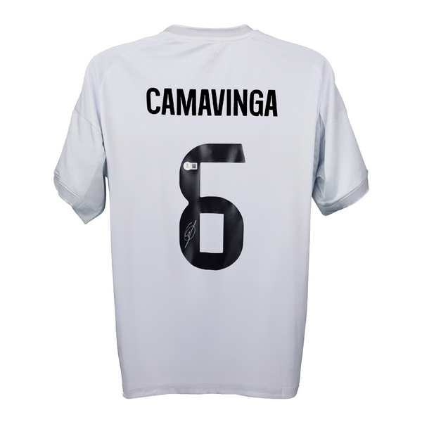 This is a Eduardo Camavinga Signed Real Madrid FC Soccer Jersey #6 with Beckett Witness. THE ITEM IN THE PICTURE IS A STOCK IMAGE. YOU WILL RECEIVE AN IDENTICAL ITEM OF EQUAL QUALITY. ALL JERSEYS ARE SIZE LARGE. Every item of signed memorabilia we sell is official and of the highest quality. We pride ourselves on providing sports fans with the most exclusive signed memorabilia on the market. We are an industry leading signed memorabilia company who can guarantee 100% authenticity on every signature we sell. The item you receive will be identical to the one you are seeing in the stock pictures. This includes the item, the authentication company, signature color and signature placement. We take pride in ensuring the authenticity of all our items. With unwavering commitment, we guarantee that every signature is 100% authentic. Every item of signed memorabilia comes with a scannable barcode which takes you to the certificate of authenticity on the company's website. These industry leading authentication companies include Beckett Authentication Services, James Spencer Authentication Services and Professional Sports Authentication Services.