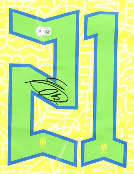 This autographed Nike soccer adult large jersey has been personally hand-signed by Endrick of the Brazil National Soccer Team.This autograph is certified by Beckett Authentication Services (BAS) Certification. It comes with the numbered authentication hologram with a QR code card that verifies the authentication on the Beckett website.
