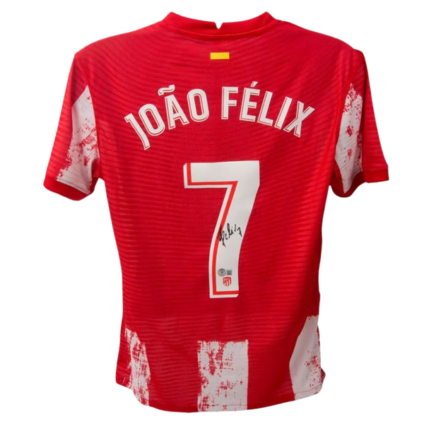 This is a Joao Felix Signed Atletico Madrid Home Soccer Jersey #7 with Beckett COA. THE ITEM IN THE PICTURE IS A STOCK IMAGE. YOU WILL RECEIVE AN IDENTICAL ITEM OF EQUAL QUALITY. ALL JERSEYS ARE SIZE LARGE. Every item of signed memorabilia we sell is official and of the highest quality. We pride ourselves on providing sports fans with the most exclusive signed memorabilia on the market. We are an industry leading signed memorabilia company who can guarantee 100% authenticity on every signature we sell. The item you receive will be identical to the one you are seeing in the stock pictures. This includes the item, the authentication company, signature color and signature placement. We take pride in ensuring the authenticity of all our items. With unwavering commitment, we guarantee that every signature is 100% authentic. Every item of signed memorabilia comes with a scannable barcode which takes you to the certificate of authenticity on the company's website. These industry leading authentication companies include Beckett Authentication Services, James Spencer Authentication Services and Professional Sports Authentication Services.