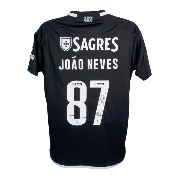 This is a Joao Neves Signed Benfica Away Soccer Jersey #87 with Beckett Witness. THE ITEM IN THE PICTURE IS A STOCK IMAGE. YOU WILL RECEIVE AN IDENTICAL ITEM OF EQUAL QUALITY. ALL JERSEYS ARE SIZE LARGE. Every item of signed memorabilia we sell is official and of the highest quality. We pride ourselves on providing sports fans with the most exclusive signed memorabilia on the market. We are an industry leading signed memorabilia company who can guarantee 100% authenticity on every signature we sell. The item you receive will be identical to the one you are seeing in the stock pictures. This includes the item, the authentication company, signature color and signature placement. We take pride in ensuring the authenticity of all our items. With unwavering commitment, we guarantee that every signature is 100% authentic. Every item of signed memorabilia comes with a scannable barcode which takes you to the certificate of authenticity on the company's website. These industry leading authentication companies include Beckett Authentication Services, James Spencer Authentication Services and Professional Sports Authentication Services.