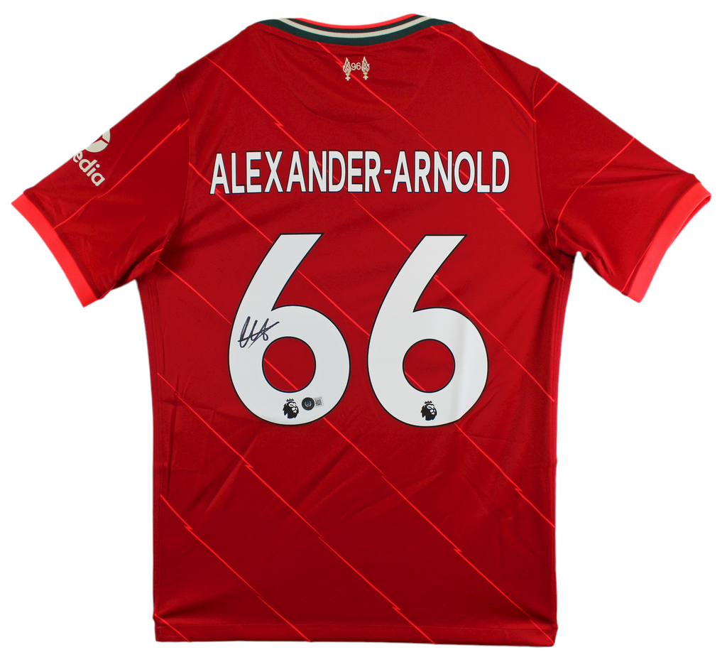 This Autographed Red Nike Jersey has been Personally Signed by Trent Alexander Arnold of the Liverpool Football Club. This item is 100% Authentic to include a Certificate of Authenticity (COA) / hologram by Beckett Authentication Services. We have multiples of this same item. While the photographs are representative of this item, the size, placement and strength of the signature may vary. Each item is hand signed, therefore, each autograph is unique. Multiple sizes available. Reach out for availability.