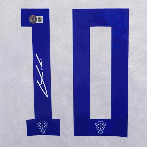 This is a Luka Modric Signed Croatia FC Home Soccer Jersey #10 with Beckett COA. THE ITEM IN THE PICTURE IS A STOCK IMAGE. YOU WILL RECEIVE AN IDENTICAL ITEM OF EQUAL QUALITY. ALL JERSEYS ARE SIZE LARGE. Every item of signed memorabilia we sell is official and of the highest quality. We pride ourselves on providing sports fans with the most exclusive signed memorabilia on the market. We are an industry leading signed memorabilia company who can guarantee 100% authenticity on every signature we sell. The item you receive will be identical to the one you are seeing in the stock pictures. This includes the item, the authentication company, signature color and signature placement. We take pride in ensuring the authenticity of all our items. With unwavering commitment, we guarantee that every signature is 100% authentic. Every item of signed memorabilia comes with a scannable barcode which takes you to the certificate of authenticity on the company's website. These industry leading authentication companies include Beckett Authentication Services, James Spencer Authentication Services and Professional Sports Authentication Services.