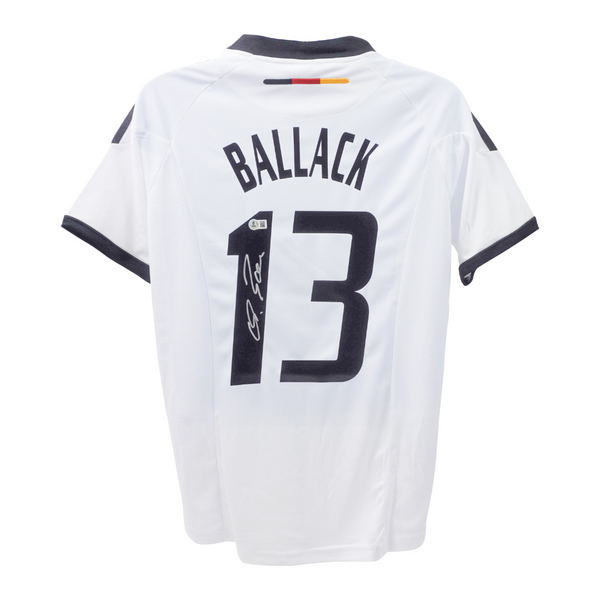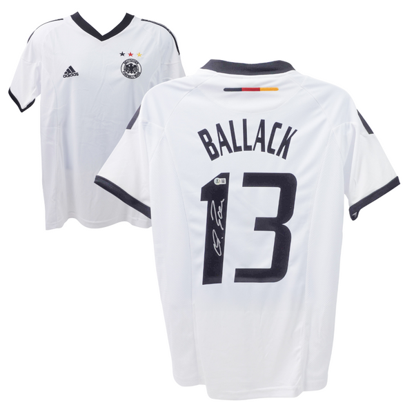 This is a Michael Ballack Signed Germany Soccer Jersey #13 with Beckett Witness. THE ITEM IN THE PICTURE IS A STOCK IMAGE. YOU WILL RECEIVE AN IDENTICAL ITEM OF EQUAL QUALITY. ALL JERSEYS ARE SIZE LARGE. Every item of signed memorabilia we sell is official and of the highest quality. We pride ourselves on providing sports fans with the most exclusive signed memorabilia on the market. We are an industry leading signed memorabilia company who can guarantee 100% authenticity on every signature we sell. The item you receive will be identical to the one you are seeing in the stock pictures. This includes the item, the authentication company, signature color and signature placement. We take pride in ensuring the authenticity of all our items. With unwavering commitment, we guarantee that every signature is 100% authentic. Every item of signed memorabilia comes with a scannable barcode which takes you to the certificate of authenticity on the company's website. These industry leading authentication companies include Beckett Authentication Services, James Spencer Authentication Services and Professional Sports Authentication Services.