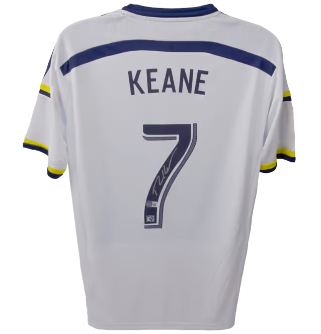 This is a Robbie Keane Signed LA Galaxy Home Soccer Jersey #7 with Beckett COA. THE ITEM IN THE PICTURE IS A STOCK IMAGE. YOU WILL RECEIVE AN IDENTICAL ITEM OF EQUAL QUALITY. ALL JERSEYS ARE SIZE LARGE. Every item of signed memorabilia we sell is official and of the highest quality. We pride ourselves on providing sports fans with the most exclusive signed memorabilia on the market. We are an industry leading signed memorabilia company who can guarantee 100% authenticity on every signature we sell. The item you receive will be identical to the one you are seeing in the stock pictures. This includes the item, the authentication company, signature color and signature placement. We take pride in ensuring the authenticity of all our items. With unwavering commitment, we guarantee that every signature is 100% authentic. Every item of signed memorabilia comes with a scannable barcode which takes you to the certificate of authenticity on the company's website. These industry leading authentication companies include Beckett Authentication Services, James Spencer Authentication Services and Professional Sports Authentication Services.