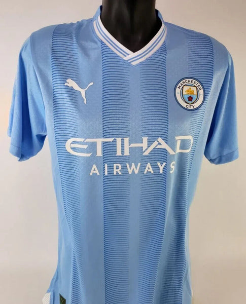 This autographed soccer jersey has been personally hand-signed by Ruben Dias of Manchester City.This autograph is certified by Players Ink. It comes with the numbered authentication hologram with a QR code that verifies the authentication on the Players Ink website. Scan the QR code with your mobile phone to verify the authenticity.