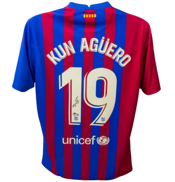 Sergio Aguero Signed FC Barcelona Home Soccer Jersey #19 with Beckett COA