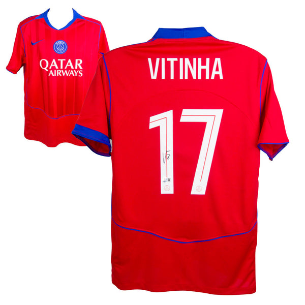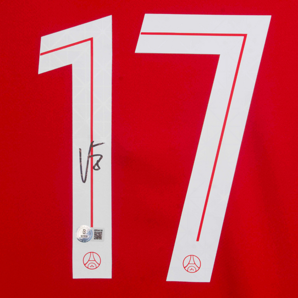 This is a Vitinha Signed PSG Away Soccer Jersey #17 with Beckett Witness. THE ITEM IN THE PICTURE IS A STOCK IMAGE. YOU WILL RECEIVE AN IDENTICAL ITEM OF EQUAL QUALITY. ALL JERSEYS ARE SIZE LARGE. Every item of signed memorabilia we sell is official and of the highest quality. We pride ourselves on providing sports fans with the most exclusive signed memorabilia on the market. We are an industry leading signed memorabilia company who can guarantee 100% authenticity on every signature we sell. The item you receive will be identical to the one you are seeing in the stock pictures. This includes the item, the authentication company, signature color and signature placement. We take pride in ensuring the authenticity of all our items. With unwavering commitment, we guarantee that every signature is 100% authentic. Every item of signed memorabilia comes with a scannable barcode which takes you to the certificate of authenticity on the company's website. These industry leading authentication companies include Beckett Authentication Services, James Spencer Authentication Services and Professional Sports Authentication Services.