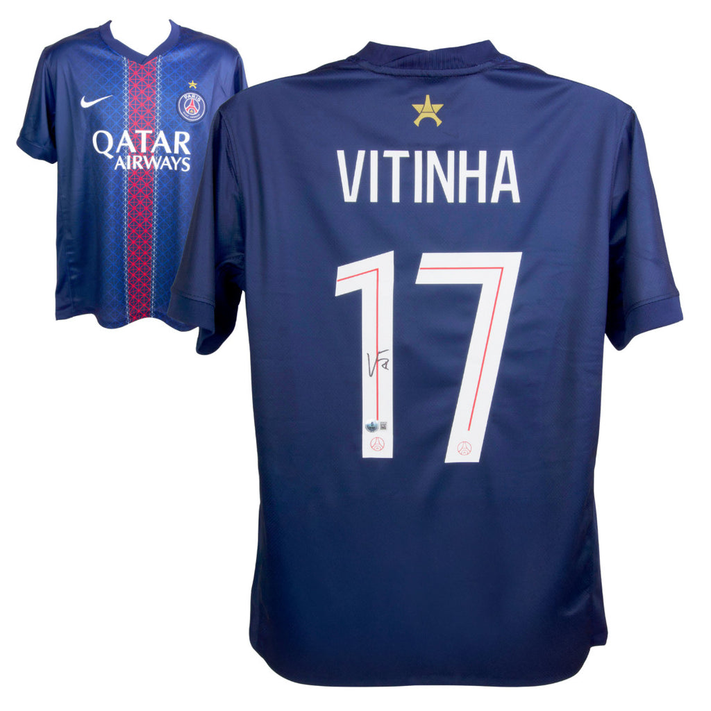 This is a Vitinha Signed PSG Home Soccer Jersey #17 with Beckett Witness. THE ITEM IN THE PICTURE IS A STOCK IMAGE. YOU WILL RECEIVE AN IDENTICAL ITEM OF EQUAL QUALITY. ALL JERSEYS ARE SIZE LARGE. Every item of signed memorabilia we sell is official and of the highest quality. We pride ourselves on providing sports fans with the most exclusive signed memorabilia on the market. We are an industry leading signed memorabilia company who can guarantee 100% authenticity on every signature we sell. The item you receive will be identical to the one you are seeing in the stock pictures. This includes the item, the authentication company, signature color and signature placement. We take pride in ensuring the authenticity of all our items. With unwavering commitment, we guarantee that every signature is 100% authentic. Every item of signed memorabilia comes with a scannable barcode which takes you to the certificate of authenticity on the company's website. These industry leading authentication companies include Beckett Authentication Services, James Spencer Authentication Services and Professional Sports Authentication Services.