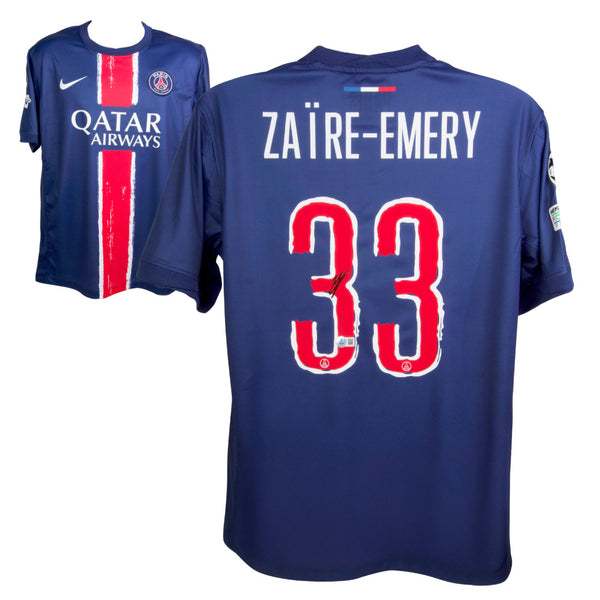 This is a Warren Zaire-Emery Signed PSG Soccer Jersey #33 with Beckett Witness. THE ITEM IN THE PICTURE IS A STOCK IMAGE. YOU WILL RECEIVE AN IDENTICAL ITEM OF EQUAL QUALITY. ALL JERSEYS ARE SIZE LARGE. Every item of signed memorabilia we sell is official and of the highest quality. We pride ourselves on providing sports fans with the most exclusive signed memorabilia on the market. We are an industry leading signed memorabilia company who can guarantee 100% authenticity on every signature we sell. The item you receive will be identical to the one you are seeing in the stock pictures. This includes the item, the authentication company, signature color and signature placement. We take pride in ensuring the authenticity of all our items. With unwavering commitment, we guarantee that every signature is 100% authentic. Every item of signed memorabilia comes with a scannable barcode which takes you to the certificate of authenticity on the company's website. These industry leading authentication companies include Beckett Authentication Services, James Spencer Authentication Services and Professional Sports Authentication Services.