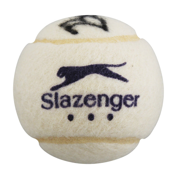 This Autographed Slazenger Tennis Ball has been Personally Signed by Bobby Riggs. This item is 100% Authentic to include a hologram by Beckett Authentication Services. This item will come with an affixed Beckett Authentication Services (BAS) authentication sticker, which includes a scannable QR code to verify authenticity. Please note that Beckett no longer provides serial-numbered COA cards, and the attached BAS sticker will serve as the complete authentication for this item. The authenticity can be verified on Beckett Authentication Services website.