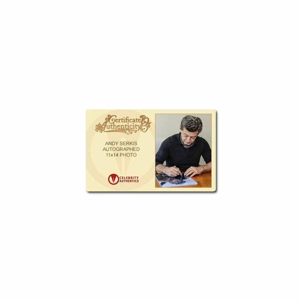 This 11x14 scene shot of Caesar from War for the Planet of the Apes has been personally hand-signed by Andy Serkis during his signing with Celebrity Authentics. Item ships affixed with Celebrity Authentics serial-numbered and tamper evident Authentication Hologram and includes Celebrity Authentics Certificate of Authenticity featuring picture of Andy signing photo. Please note: with multiples signed by the actor, a sample photo is used from stock to represent what you will receive. Exact autograph size and placement may vary.