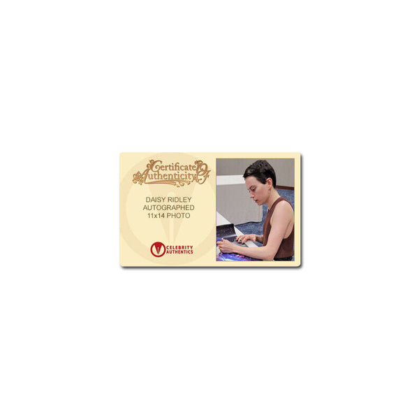 This 11x14 photo of Rey from Star Wars: The Last Jedi has been personally hand-signed by Daisy Ridley during her signing with Celebrity Authentics. Item ships affixed with the Celebrity Authentics serial-numbered and tamper evident Authentication Hologram and includes Celebrity Authentics Certificate of Authenticity featuring a picture of Daisy signing photo. Please note: with multiples signed by the actor, a sample photo is used from stock to represent what you will receive. Exact autograph size and placement may vary.
