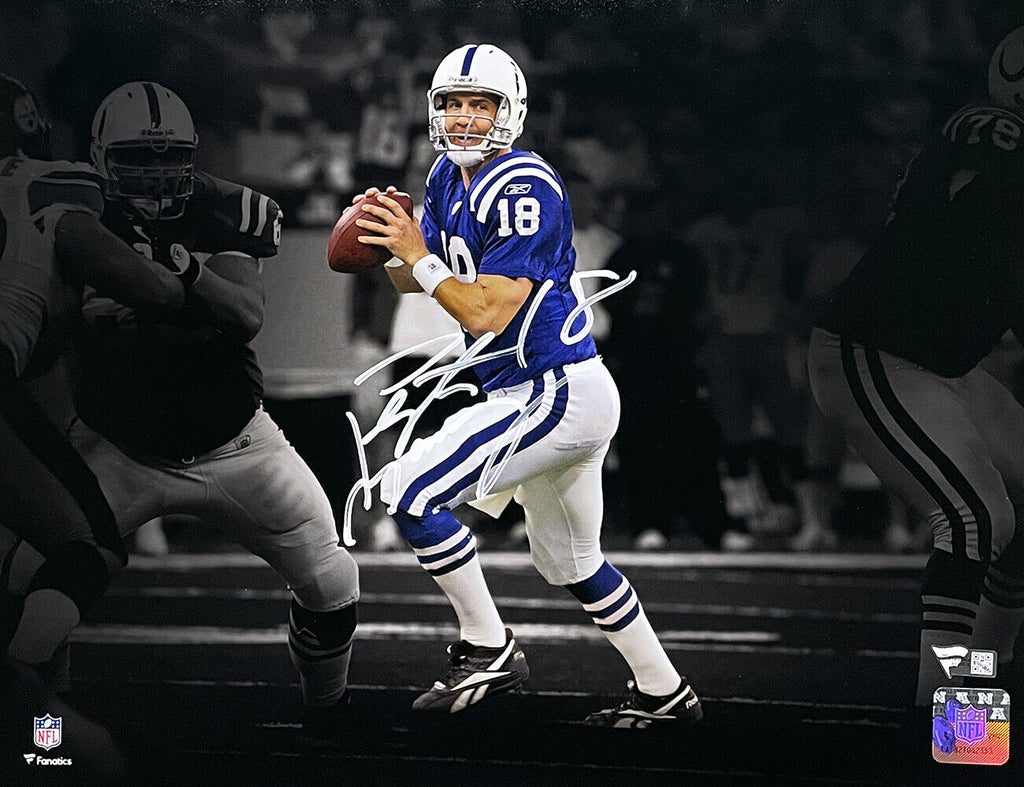 Featured is a Peyton Manning signed Indianapolis Colts 11x14 spotlight photo. This photo was hand signed by Peyton Manning and authenticated by Fanatics authentication services. Included with the photo is a Fanatics hologram and certificate of authentication. This item would make a great addition to any sports memorabilia collection! SPECIFICATIONS Autographed By: Peyton Manning Team: Indianapolis Colts Sport: Football Authentication: Fanatics Authentic